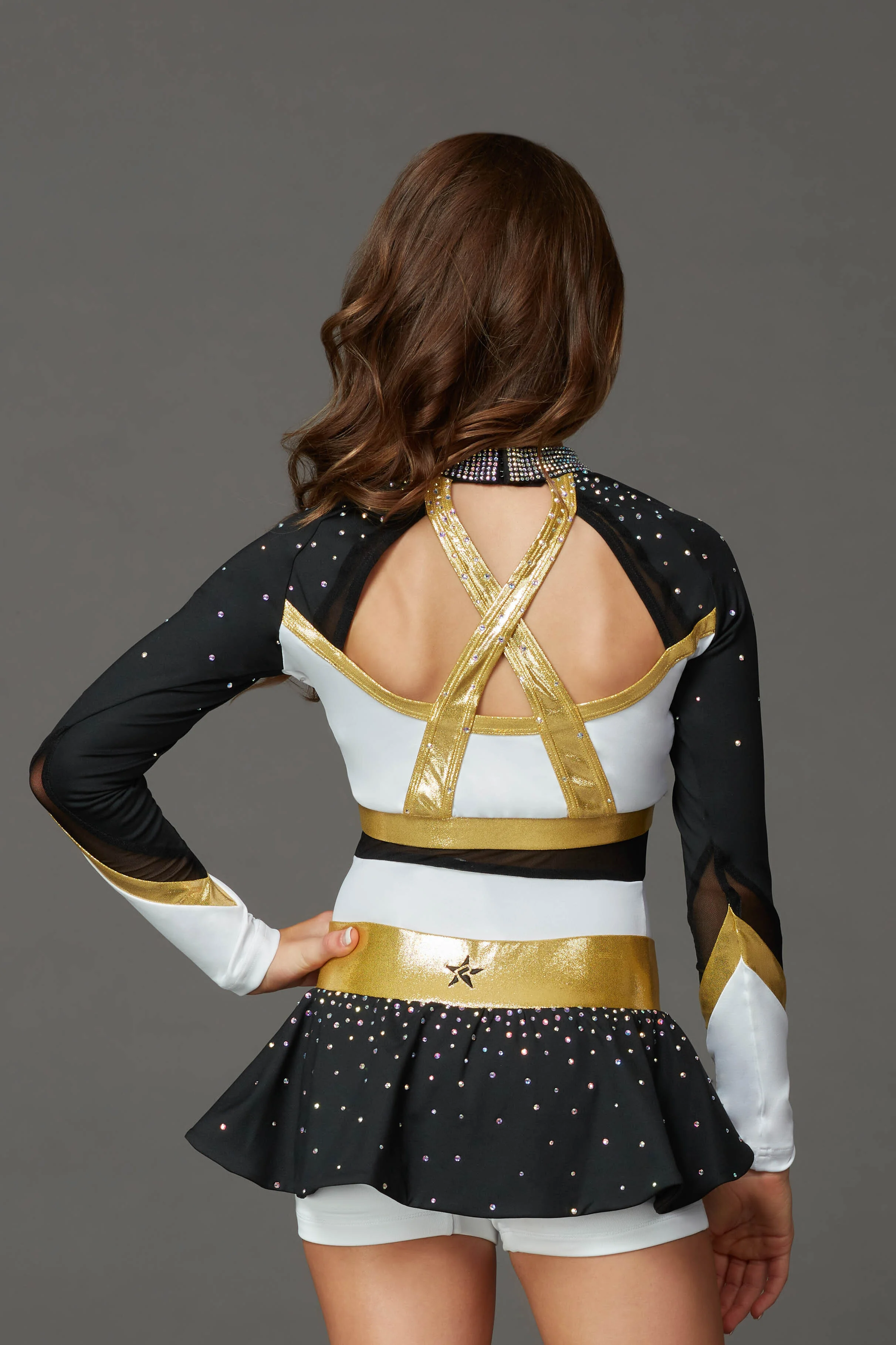 As part of our Purple Label Collection, this design is a starting place for you to build your one-of-a-kind uniform. Customize this template with your choice of colors, fabrics, logo and more. Add crystals, sublimated panels, mystique accents... the list goes on! For pricing, please contact an account representative.